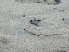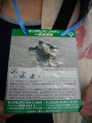 それでもってこの前の日曜日はウミガメの放流会に行って来ました。結構この遠州灘周辺では頻繁にウミガメ放流イベントは行われているんだけど、toyohiko達が参加したのは今回が初めて。放流する前に説明を聞いて思ったのは「やっぱり砂浜を大切にしなとこのままぢゃウミガメ絶滅しちゃうし...」かなり深刻.....。いざ!海に向かって旅立ちの時。放流して海に向かって必死で歩いているウミガメの赤ちゃんの姿が、リクピーには良い刺激になるかな〜って思ったらtoyohiko達大人も感動!このアカウミガメの赤ちゃんが大きくなってこの砂浜に帰って来るのは20年後!!その頃にはリクピーも立派な大人になってる事でしょう....元気に帰って来てね。そして帰って来る砂浜を守らなくっちゃ!