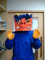 昨日はリクピーの通う保育園に鬼役としてtoyohikoも一緒に節分に参加して来ました。写真の格好なんだけど、どの子もどの子も「がおぅ〜!!」って言いながら近づくだけで大泣きなんだもんね。ビツクリ!一応、先生からは「鬼さんが一人一人抱っこしてあげて写真を撮りますから」って言われていて、泣いている子供を抱こうもんなら大騒ぎですヨ。可愛そうなくらい泣いちゃって....もちろんリクピーも抱っこしたけど、父親とはわかるはずもなく、泣いてたよ。最後はお面を取って、鬼を退治した子供達にご褒美にお菓子をあげにきたお父さん役で登場できたのが唯一の救いだったかもね。とっても楽しかったよ。だってこんな節分初めてだったから。