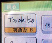 タダイマtoyohikoはDSの「えいご漬け」でTOIECに向けて猛勉強中ですが、現在の英語力ランクは「B」ランクなんだ。一度「A」まで上がったんだけど、その次は一気に「E」ランクまで...2週間ほど何もやってなかったからこの有様...。やっぱりなんでも毎日続ける事が大切だと痛感したよ。今年はこの「えいご漬け」のみでTOEIC対策をしようかな?って思います。そうすればこのソフトの実力がわかるはずだし♪