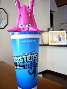 タイのお土産という事でもらったイカボトル....でもかなり微妙〜。せっかく買って来てもらったので、ありがたくイタダキマス。タイの水族館みたいなところで売ってるモノ??
